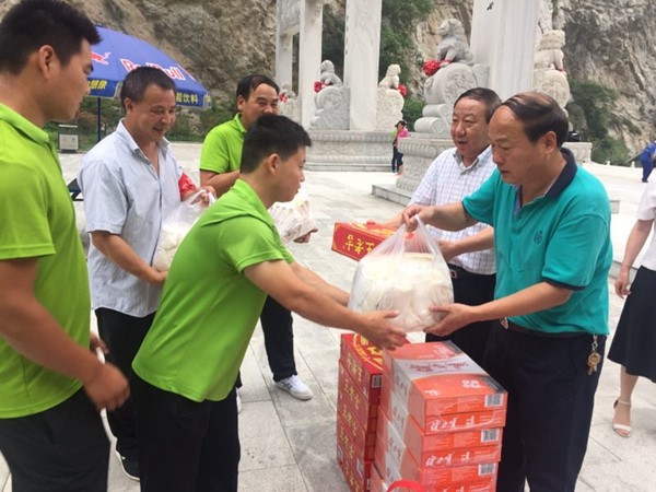 8月2日上午,陜西省財貿工會主席段喬斌在陜旅集團工會主席李小元、太華索道黨委副書記、工會主席王曉麗、副總經理楊建國的陪同下,慰問了公司旅游公路、滑道等區域堅守在崗位的一線職工,并送上王老吉、毛巾、洗滌液等防暑降溫慰問品。